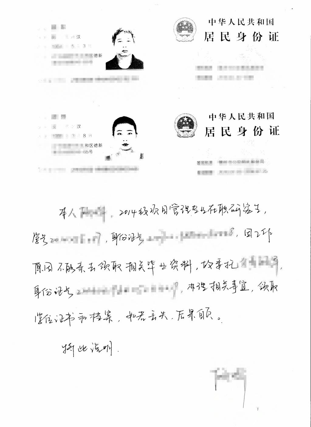 2.如有特殊原因,可代领。代领人需携带双方身份证复印件及毕业学员手写并签字的委托书一份,如有丢失,后果自负。